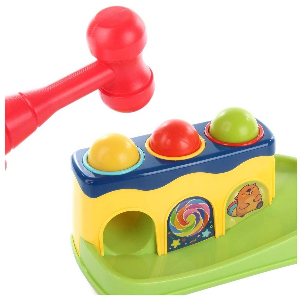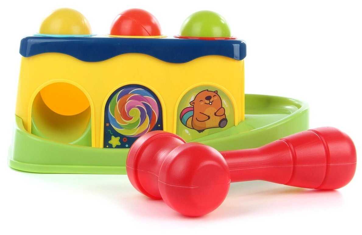 - + Хорошая игрушка. Шарики-погремушки. Ребенку очень удобно молоток в руке