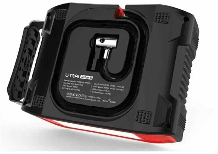 Подробная комплектация : | -Пуско-зарядное устройство с воздушным компрессором UTRAI Jstar 5 - 1шт., -Сумка для хранения и переноски - 1 шт., -Умные зажимы - 1шт., -Адаптер для прикуривателя постоянного тока - 1шт., -Зарядный кабель USB-Type-C - 1шт., -Адаптер для клапана - 3шт., -Руководство пользователя - 1шт |