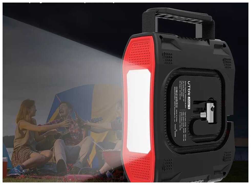 Имеется насос с автоматическим отключением, фонарик, и возможность зарядки смартфона и проч.
