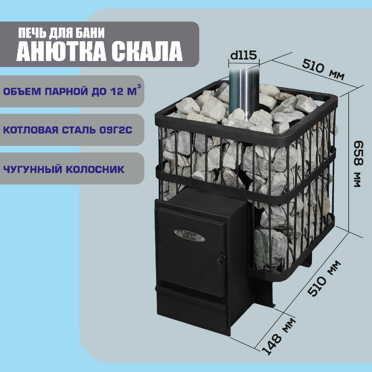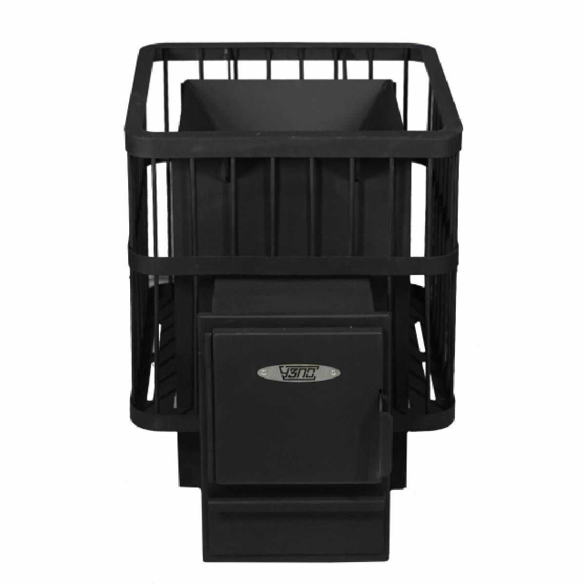- + Цена, простота устройства и установки. Топка из предбанника. Большой объём камней, действительно мягкое тепло, даже возле печки не жжёт. Быстро, за две закладки дров прогревает баню, а дальнейшая топка поддаёт жар. При этом если не поддать на каменку воды, в бане сухо, влажность 20-25 % при 65⁰. Нам достаточно, дети топят больше. Удобная топка для уборки. Низ скошен, колосник легко вынимается, зола легко ссыпается в лоток.