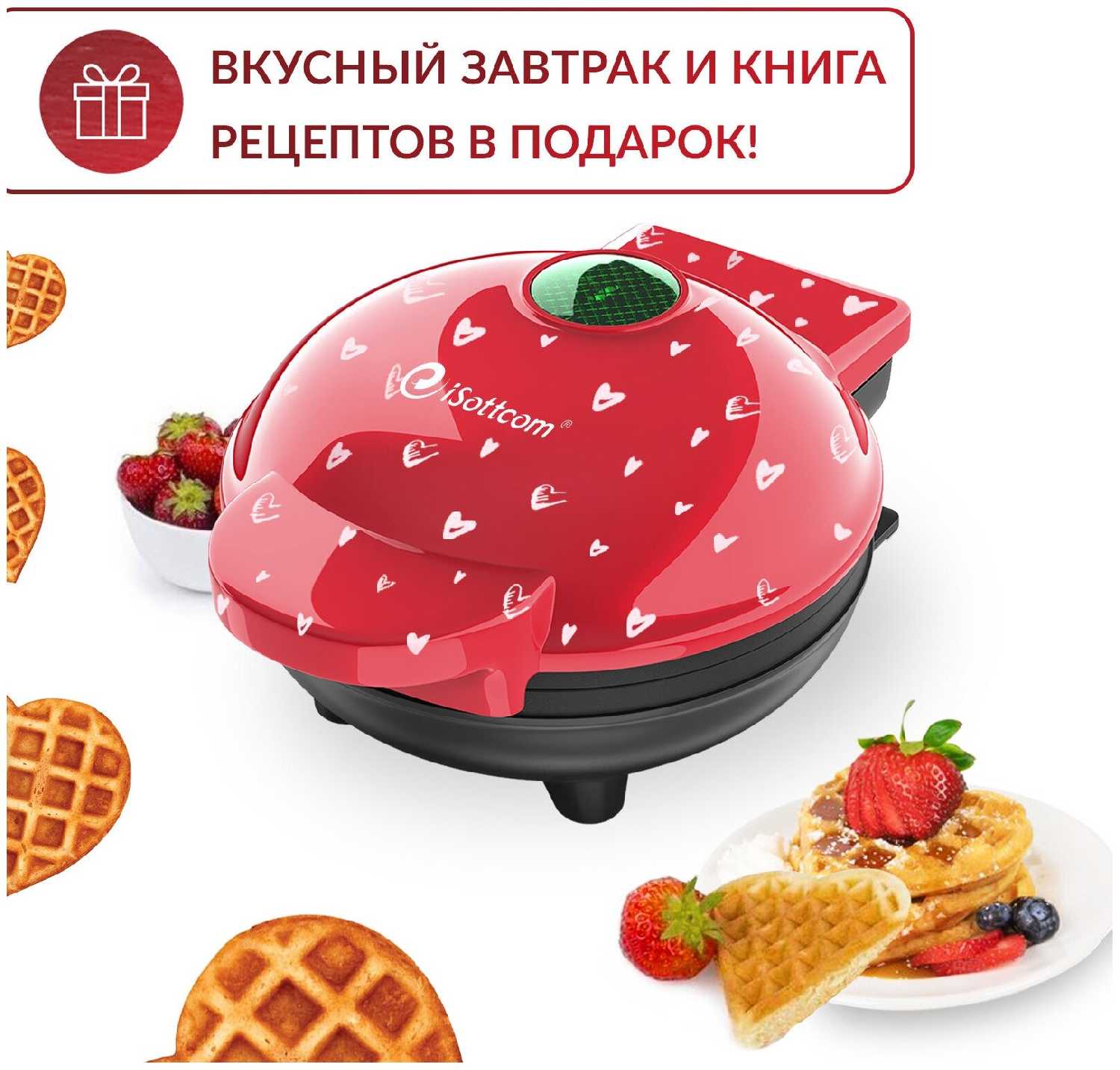 7.8/10 балловiSottcom электрическая для венских и бельгийских вафель красная, 12 x 9 см с книгой рецептов. В подарок смесь для вафель.