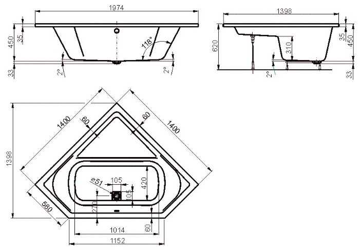 Характеристи Vagnerplast Cavallo 140x140 VPBA140CAV3X-04 акрил угловая