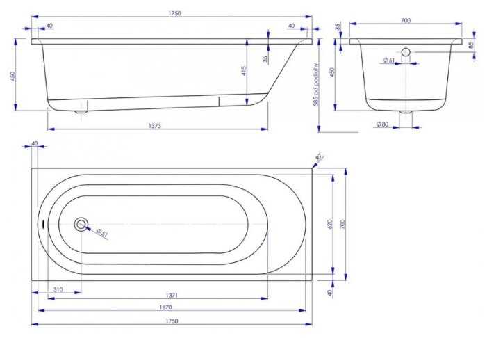 - + Ванна топ, стенки толстые, геометрия ровная