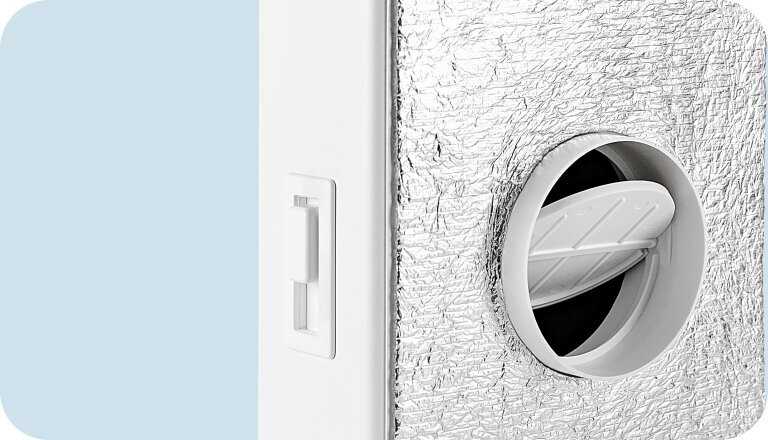 - + Закрывает поток холодного воздуха, в отличии от того, что ставит застройщик. В любой момент можно открыть клапан.
