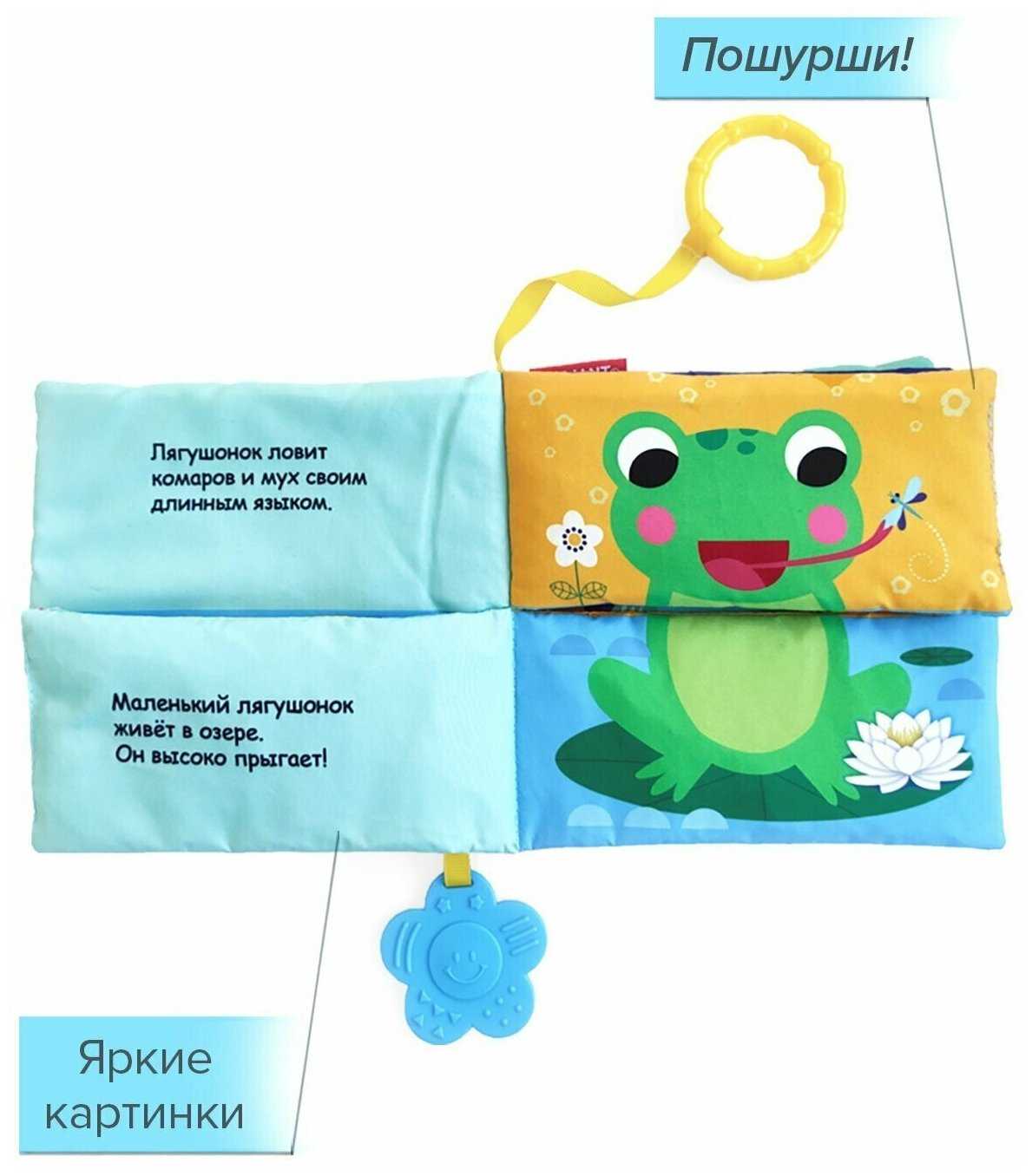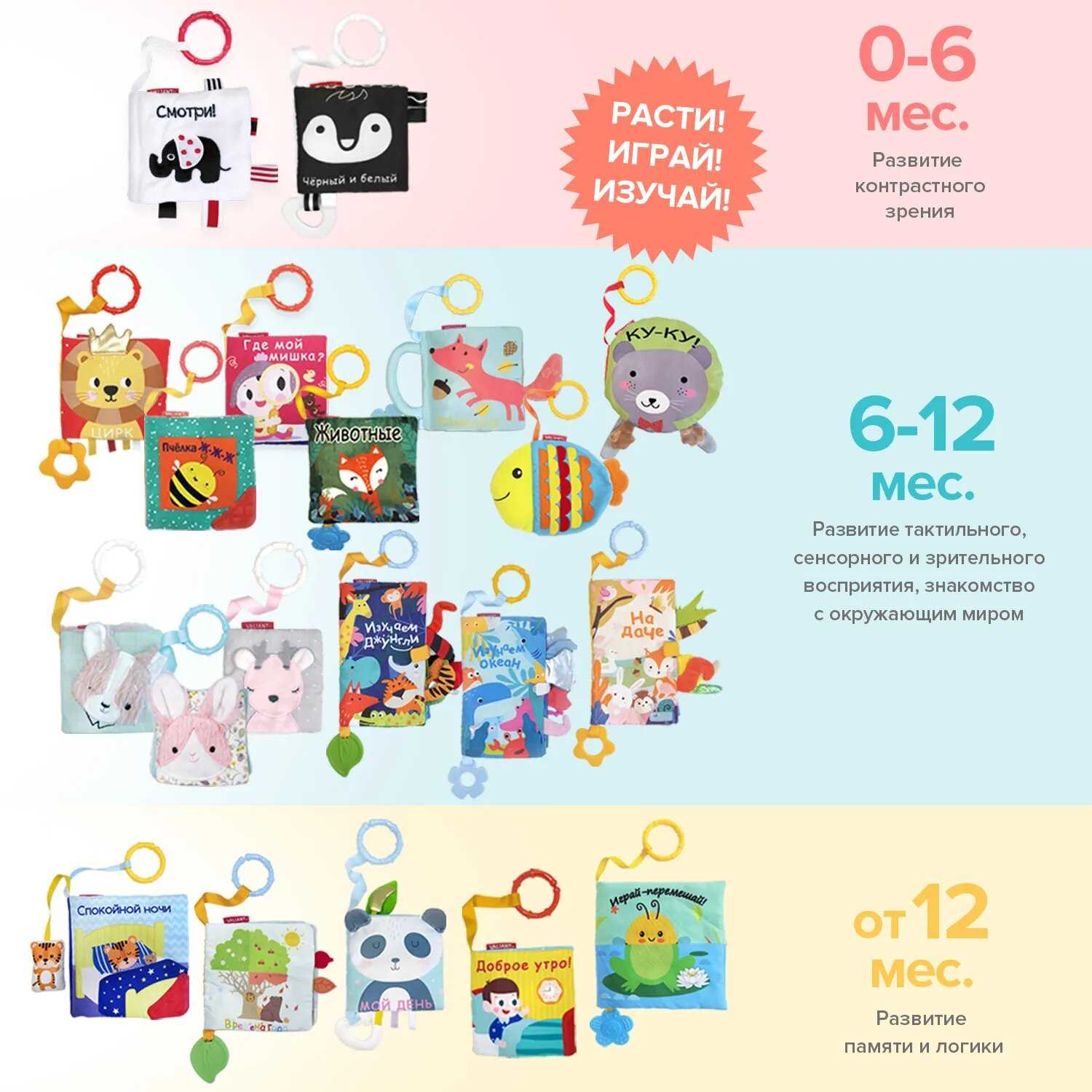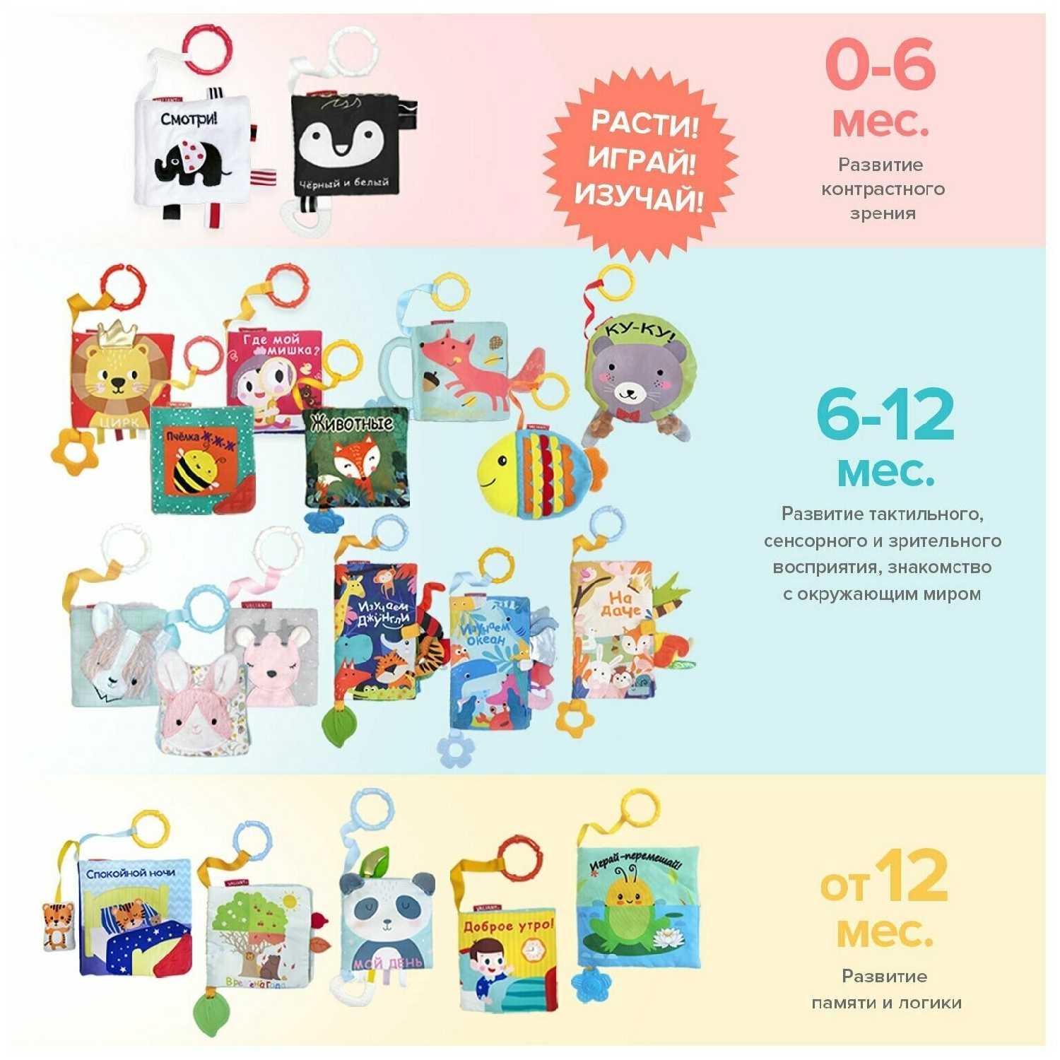 - + Большая по размеру, шуршит, пищит, мягкая, ребёнок в 4 месяца с интересом взаимодействует, грызет, комкает. Можно стирать книжку в машинке