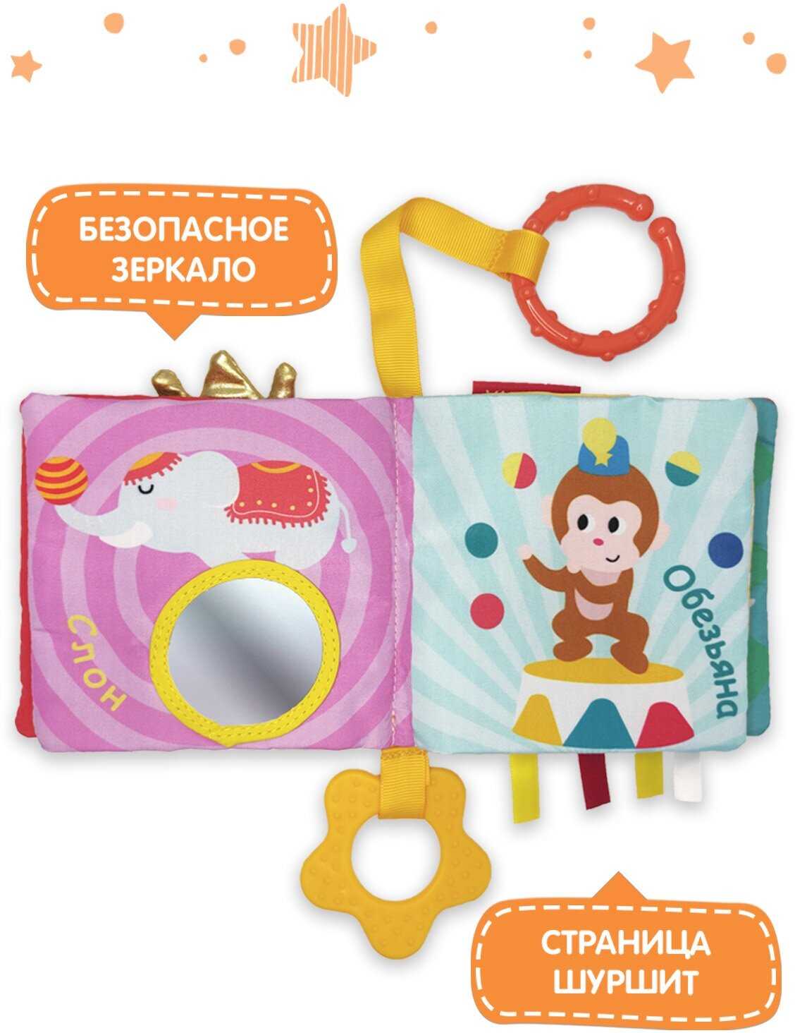 - + много разных материалов, грызунок, слова на русском языке, яркая, можно повесить на коляску или кроватку