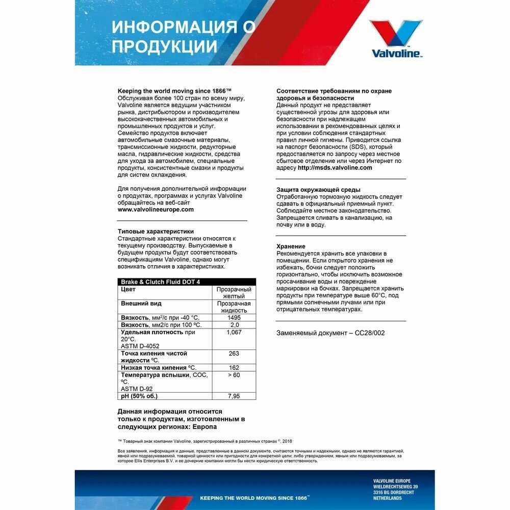 Характеристи VALVOLINE BRAKE & CLUTCH FLUID DOT 4