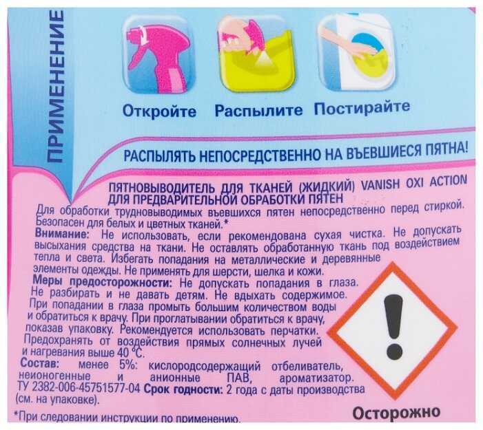 Характеристи Vanish Oxi Action для предварительной обработки пятен