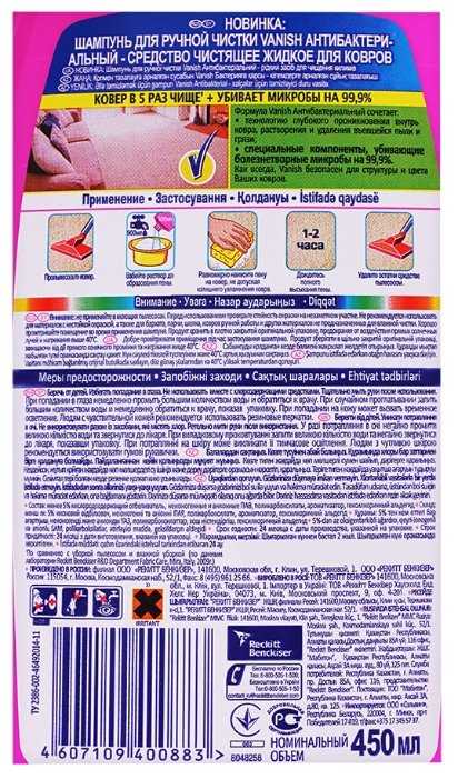 53 отзывов пользователей o Vanish Шампунь для ручной чистки ковров антибактериальный Gold