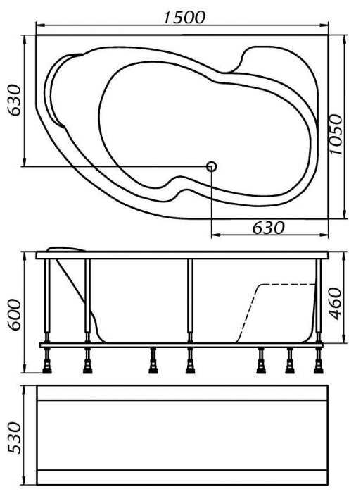 1Marka Diana 170x105 с каркасом, без гидромассажа акрил угловая