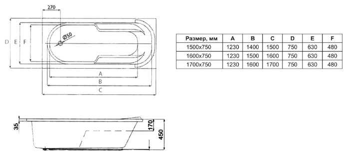 - подробная комплектация: акриловая ванна Bristol 170x75 см 35020070
