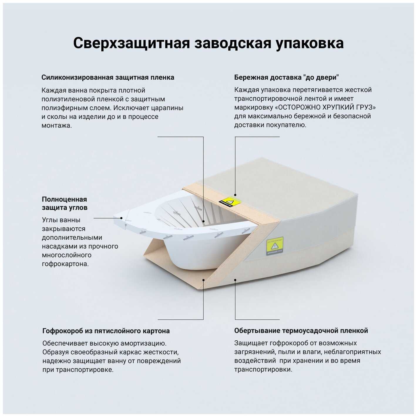 - подробная комплектация: акриловая ванна Grance Hill 170x105 см; усиленный металлический каркас с монтажным набором Complement; мягкий силиконовый подголовник; ультраплоский лицевой (фронтальный) экран Complement; инструкция по монтажу и эксплуатации; гарантийный талон.