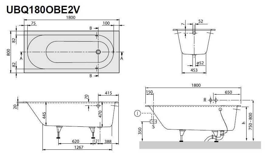 Villeroy & Boch OBERON 2.0 180x80 UBQ180OBR2DV-01 кварил