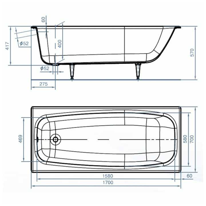 ROMANNALINE Ванна акриловая 155х70 см (ETALON BS15570ETA1K3)