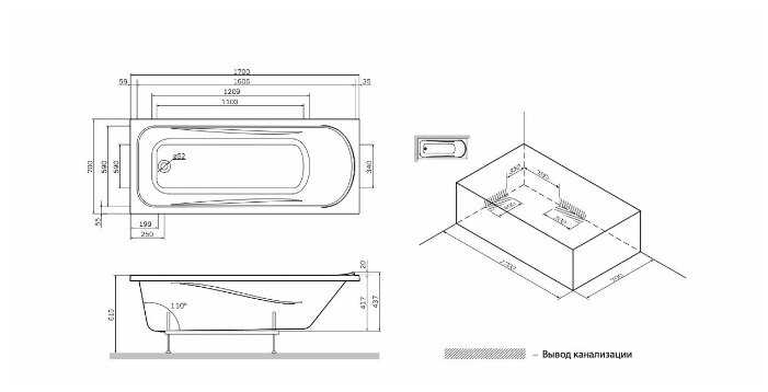 - подробная комплектация: ванна