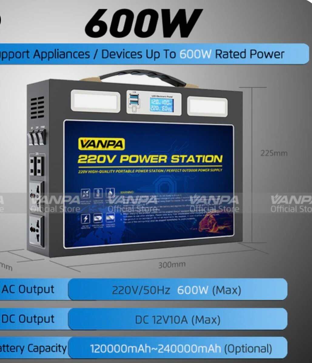 Характеристи VANPA Портативная автономная электростанция (120000mAh 600Вт)