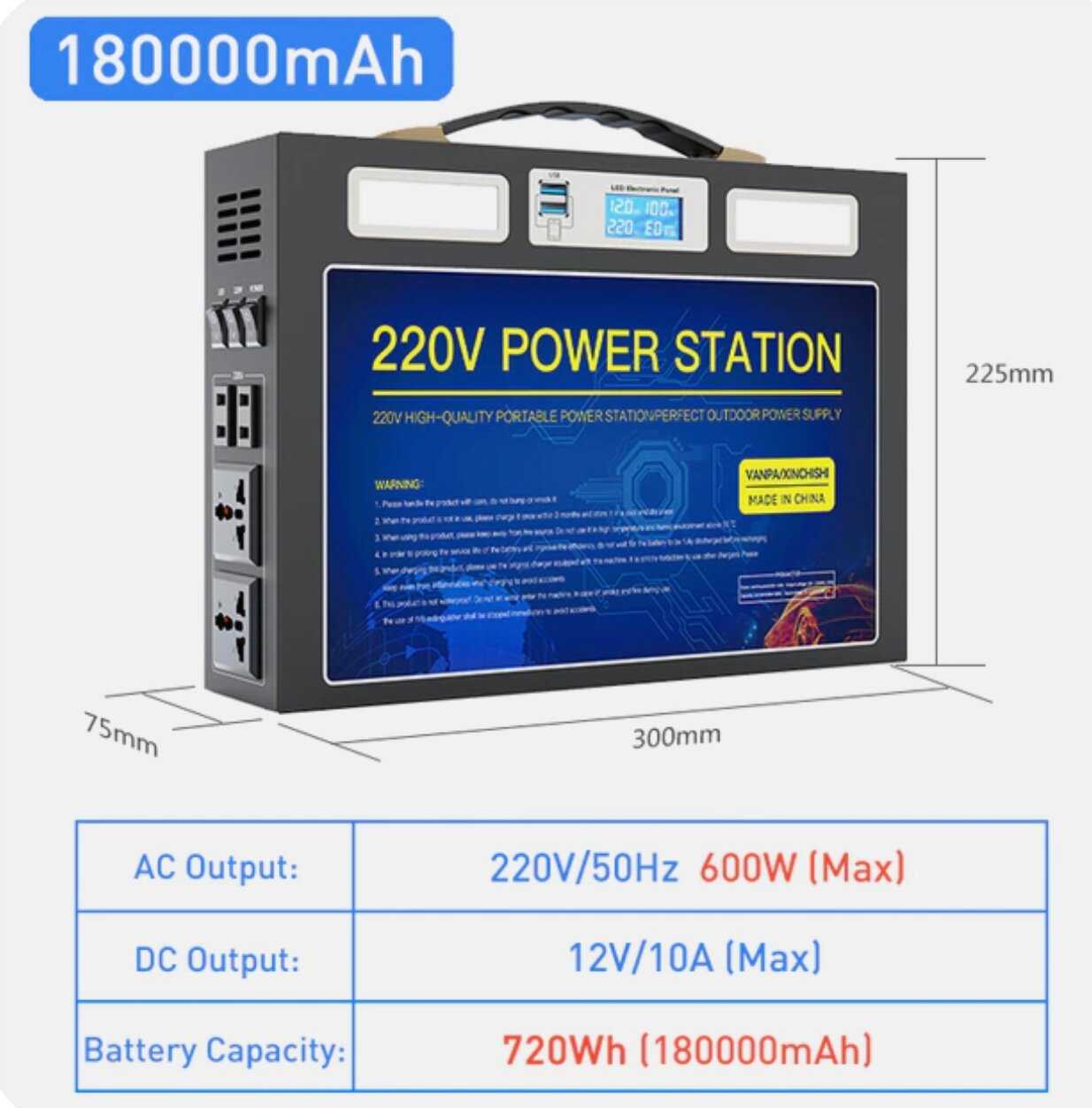 Характеристи VANPA Портативная автономная электростанция (180000mAh 300Вт)