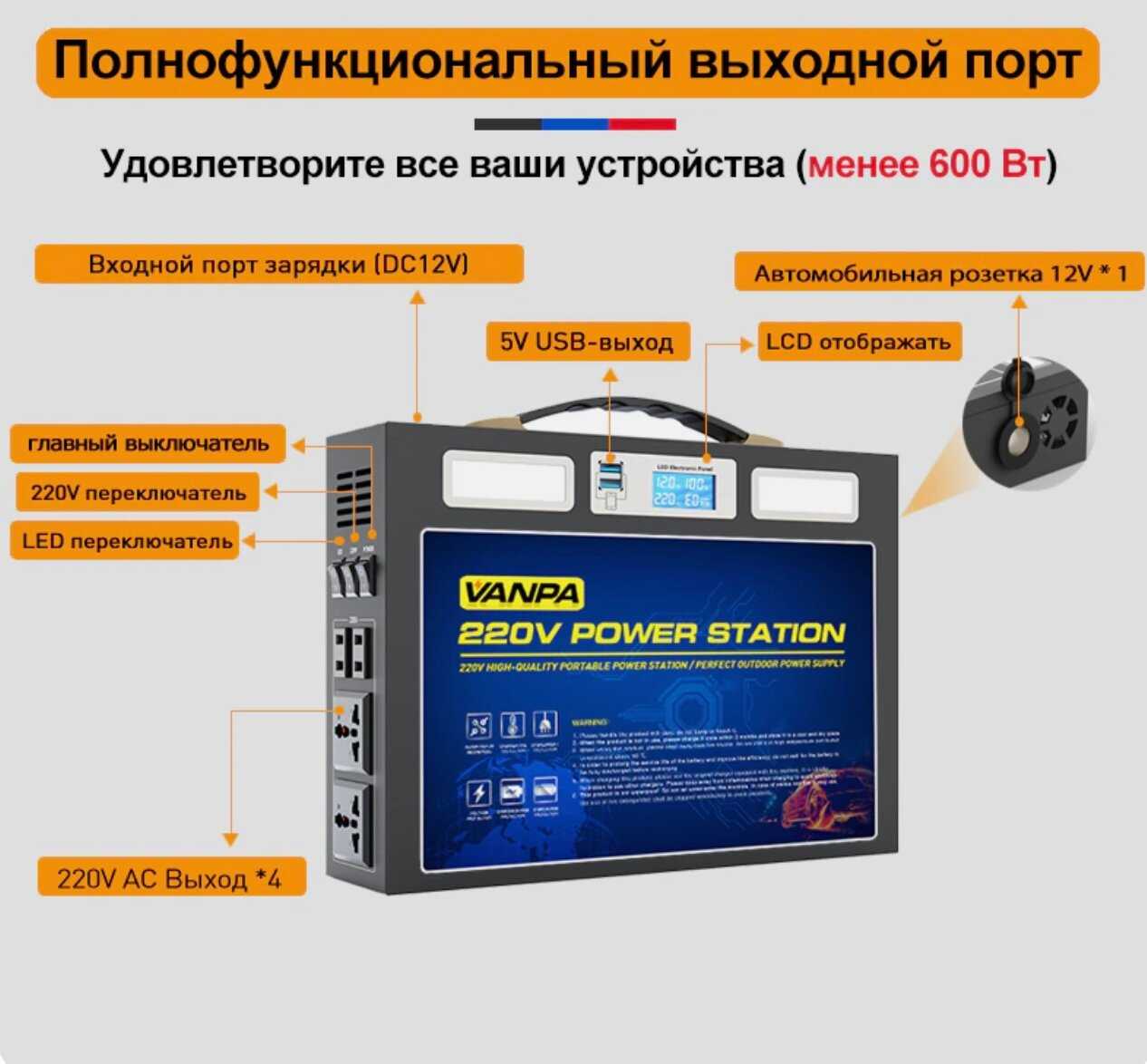 Отзывы о Портативная автономная электростанция VANPA Портативная автономная электростанция VANPA (180000mAh 300Вт)