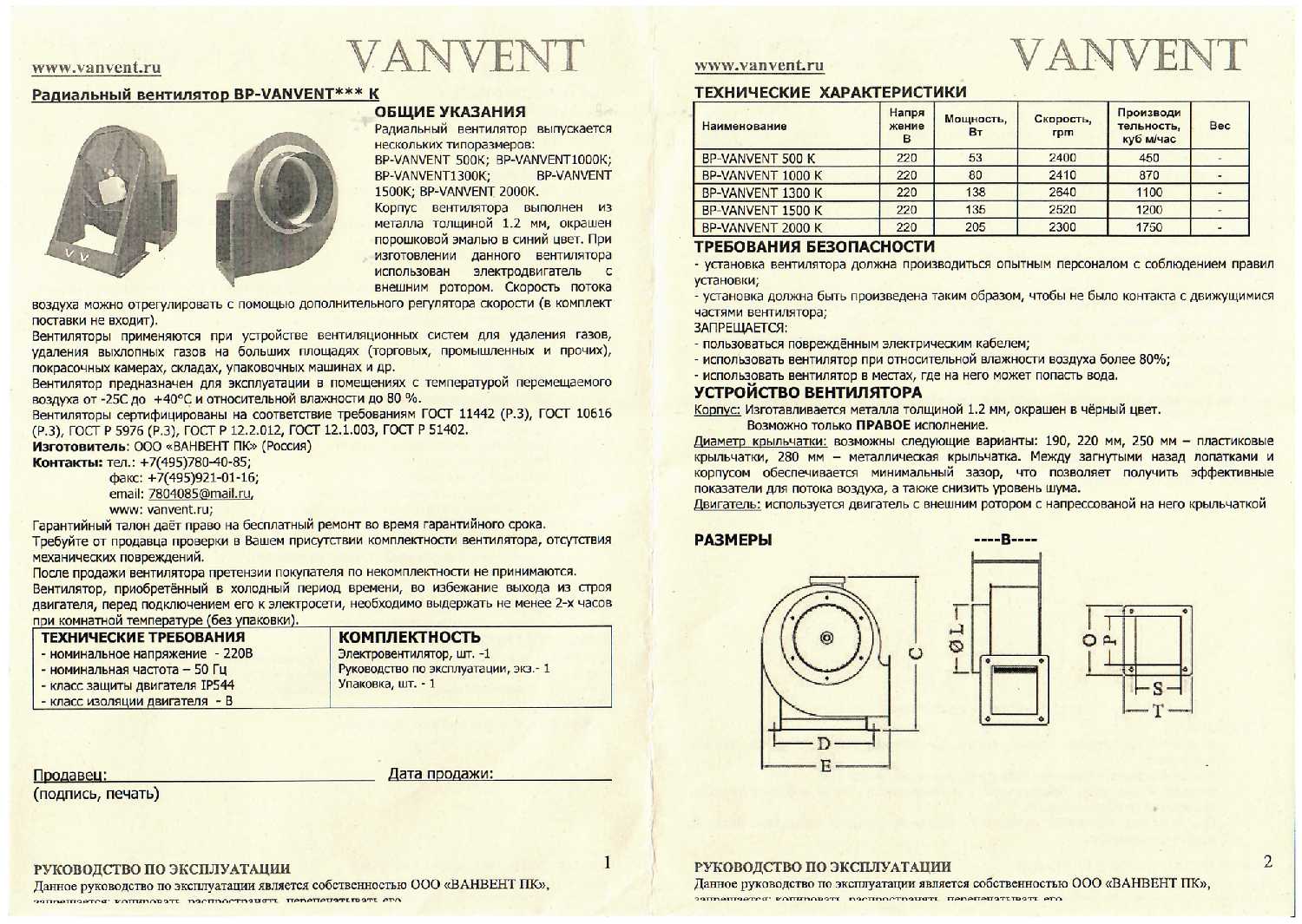 Ванвент Вентилятор радиальный BP-1000 (К)?