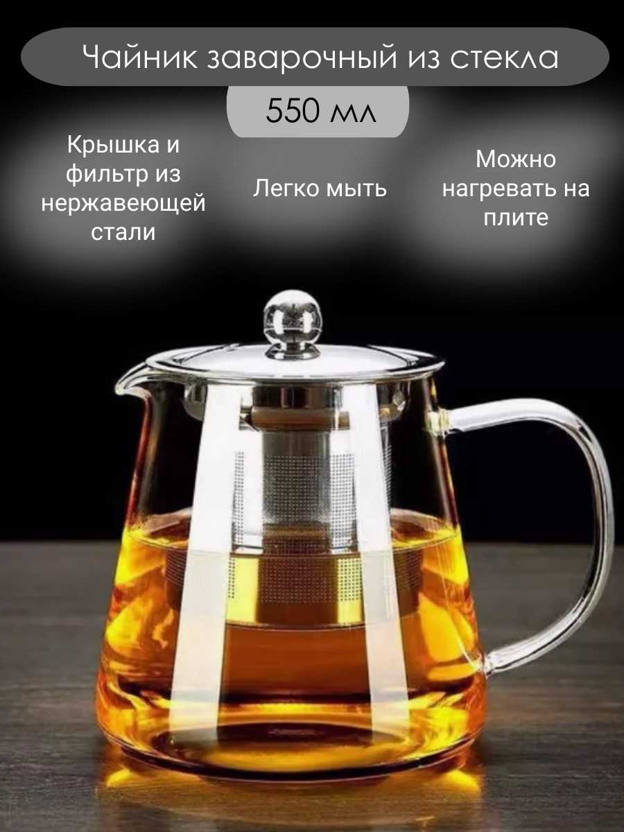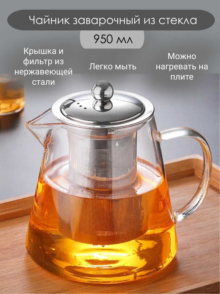 - + чайник из жаропрочного стекла,ситечко из нержавейки. Можно на плиту ставить для заваривать чая.