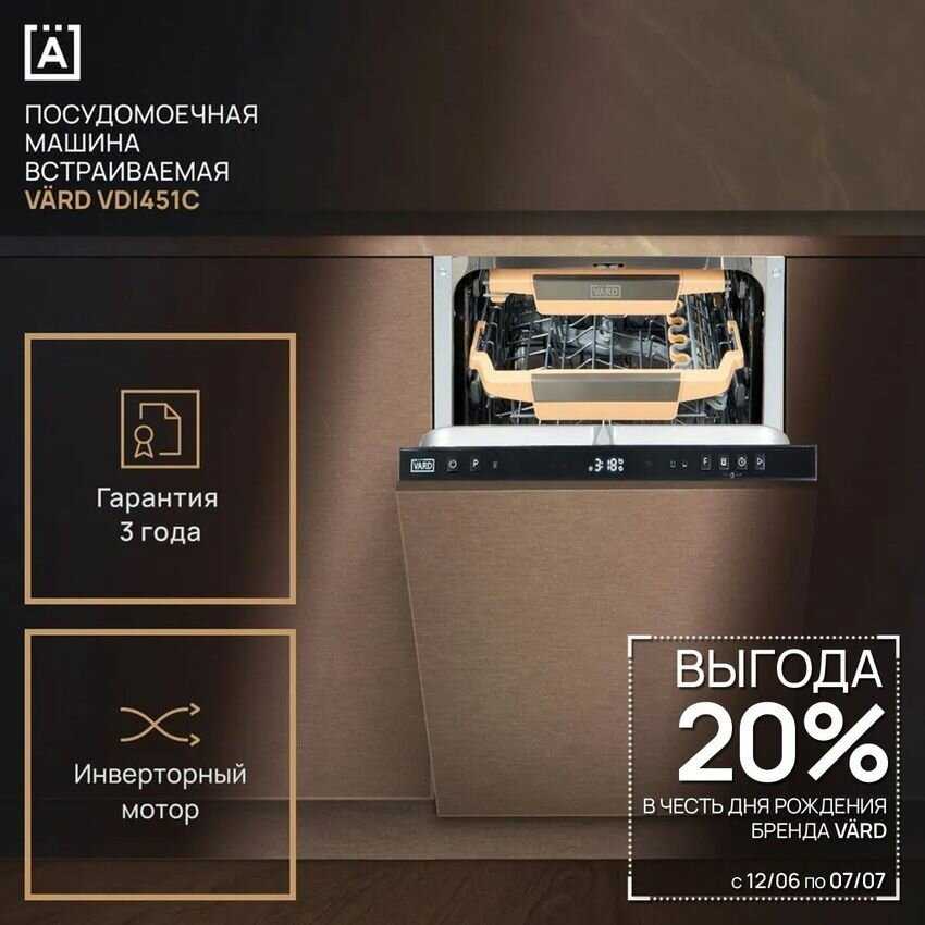 - - Очень неудобная посудомойка. Не рекомендую никому. Сравниваю с посудомойкой DEXP за 25 тр. (стоит на даче у меня). Все преимущества Vard - чистый маркетинг. Дешёвая китайчатина. Красная цена для нее 20тр. В принципе дальше можно не читать. Но кому интересно...: