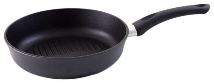 Добротная сковорода. С толстым дном и неглубоким рефлением. Можно жарить-тушить без масла - ничего не прилипнет. Моется легко.