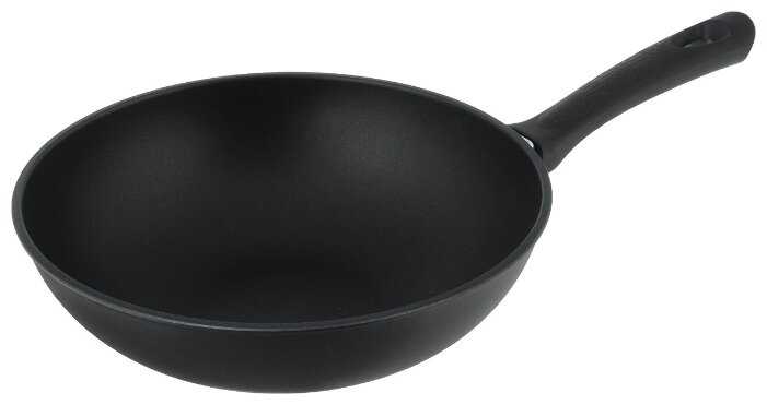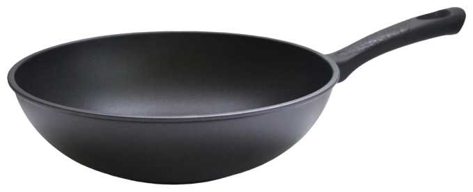 отличный вок из толстого штампованного алюминия, нагревается на простой стеклокерамике моментально, причем края тоже, не только дно;
