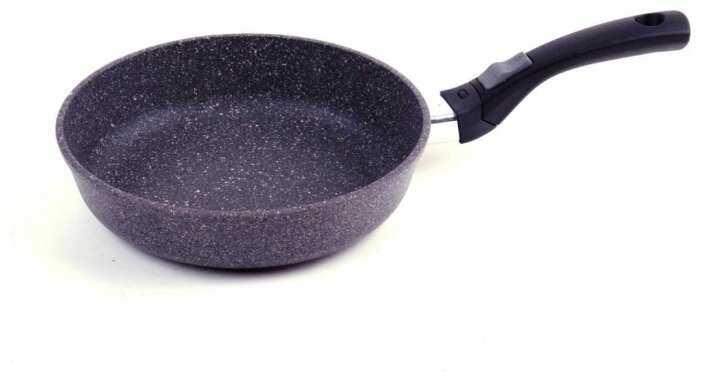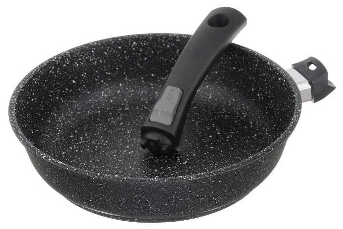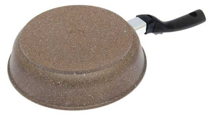 - + Очень удобная сковородка, ничего не пригорает. Ручка снимается. В эксплуатации 2 месяца.