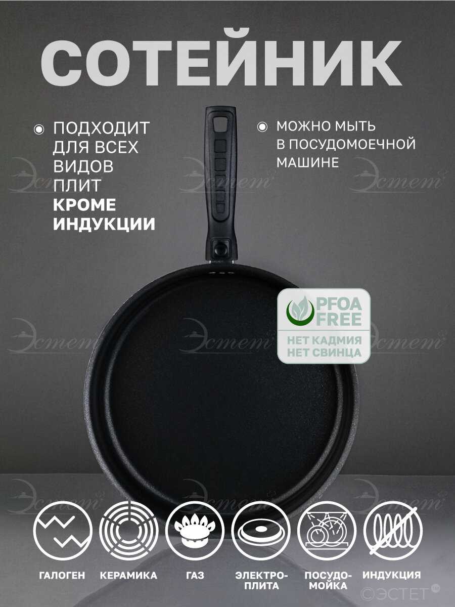 Отличное соотношение цена/качество. Сотейник глубокий и вместительный, съёмная ручка, еда не пригорает.