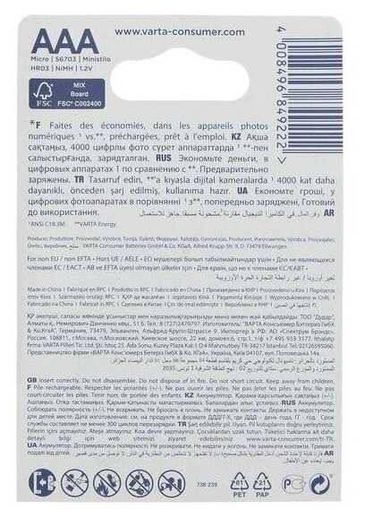 36 отзывов пользователей o VARTA Recharge Accu Power 800 AAA