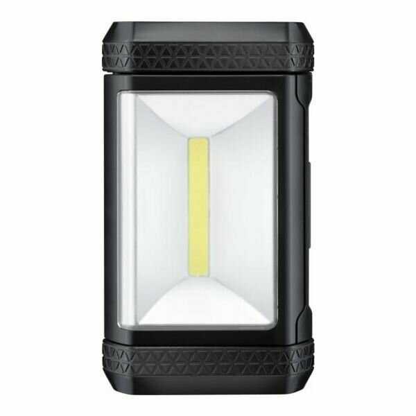 - + Очень компактный, отличное сцепление с металлической поверхностью за счет внутреннего магнита в основе, да и просто устойчив на любой поверхности. Прекрасно освещает пространство и заменяет лампу накаливания (150Вт минимум) в случае, если она не предусмотрена... Есть возможность подвесить за счет боковых выдвигающихся ушек. Установка любого угла падения света за счет движения экрана с лампой... Однозначно рекомендую и как осветительный прибор, и как фонарь... Использую редко, поэтому за год аккумуляторные батарейки в рабочем состоянии, свечение не ухудшилось!