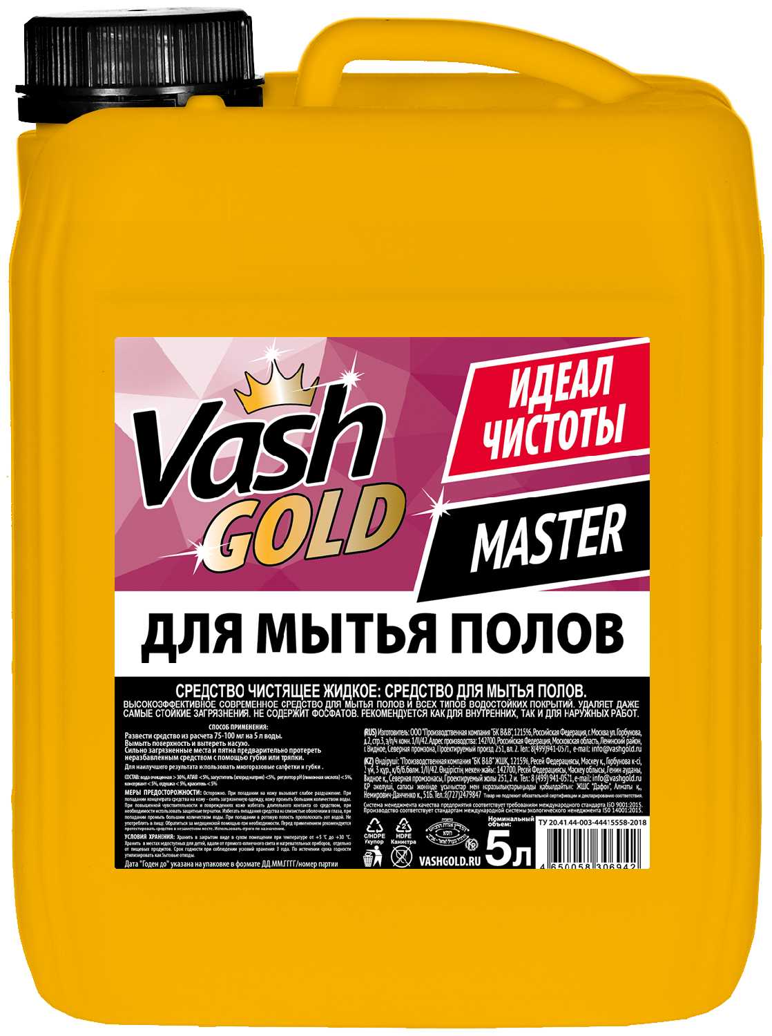 | Подробная комплектация : | VASH GOLD Средство для мытья пола 5л Master 306942 |
