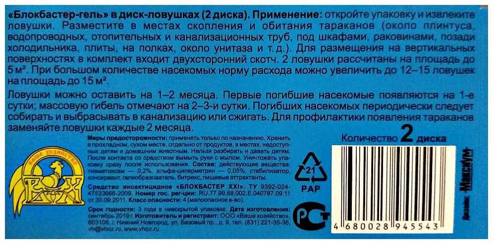 Характеристи Ваше хозяйство Блокбастер XXI Диск от тараканов