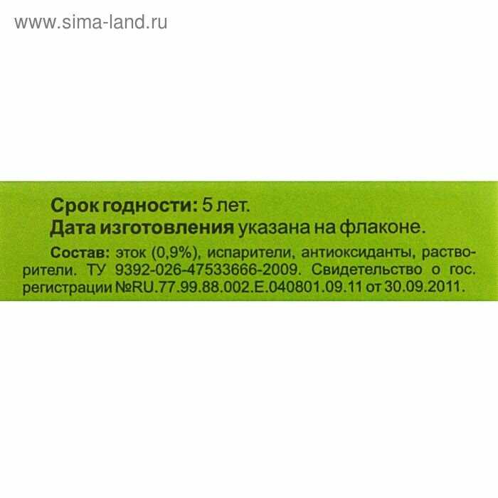 | Состав : | эток 0.9%, испарители, антиоксиданты, растворители |