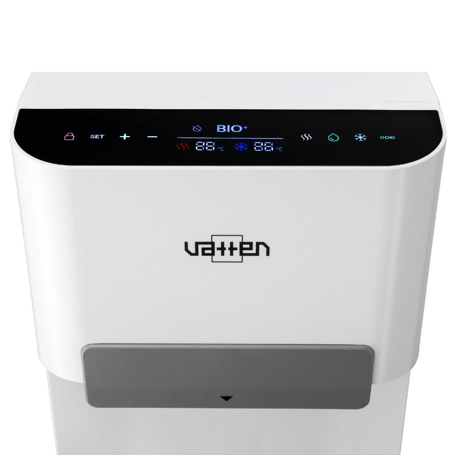 - + Сенсорная панель управления радует своей простотой. Есть защита от случайных касаний, что удобно в доме. Центральный кран упрощает использование. Когда устройство в standby, дисплей не мигает, экономит энергию. Показывает температуру для горячей и холодной воды, и все настройки легко меняются. Можно задать точный объем воды для разлива. Компрессорный охладитель реально охлаждает жидкость, не то что электронные аналоги. С его помощью завариваю чай или кофе при 97 градусах – идеально.