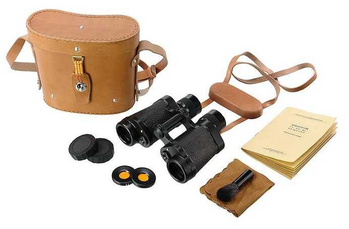 - + Очень точная копия советского бинокля, инструкция на состаренной бумаге.
