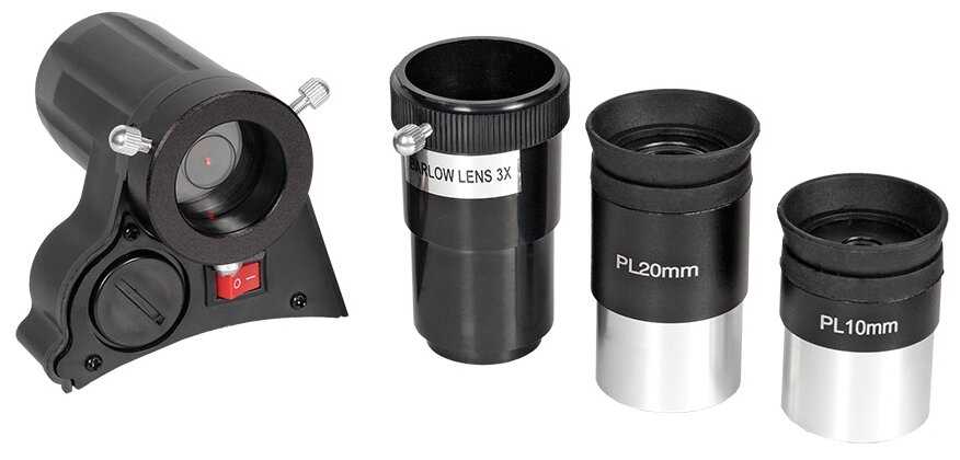 - - Комплектный искатель сразу под замену , советую взять хороший с красной точкой . Нет в комплекте линзы Барлоу , советую не экономить и взять хорошую .