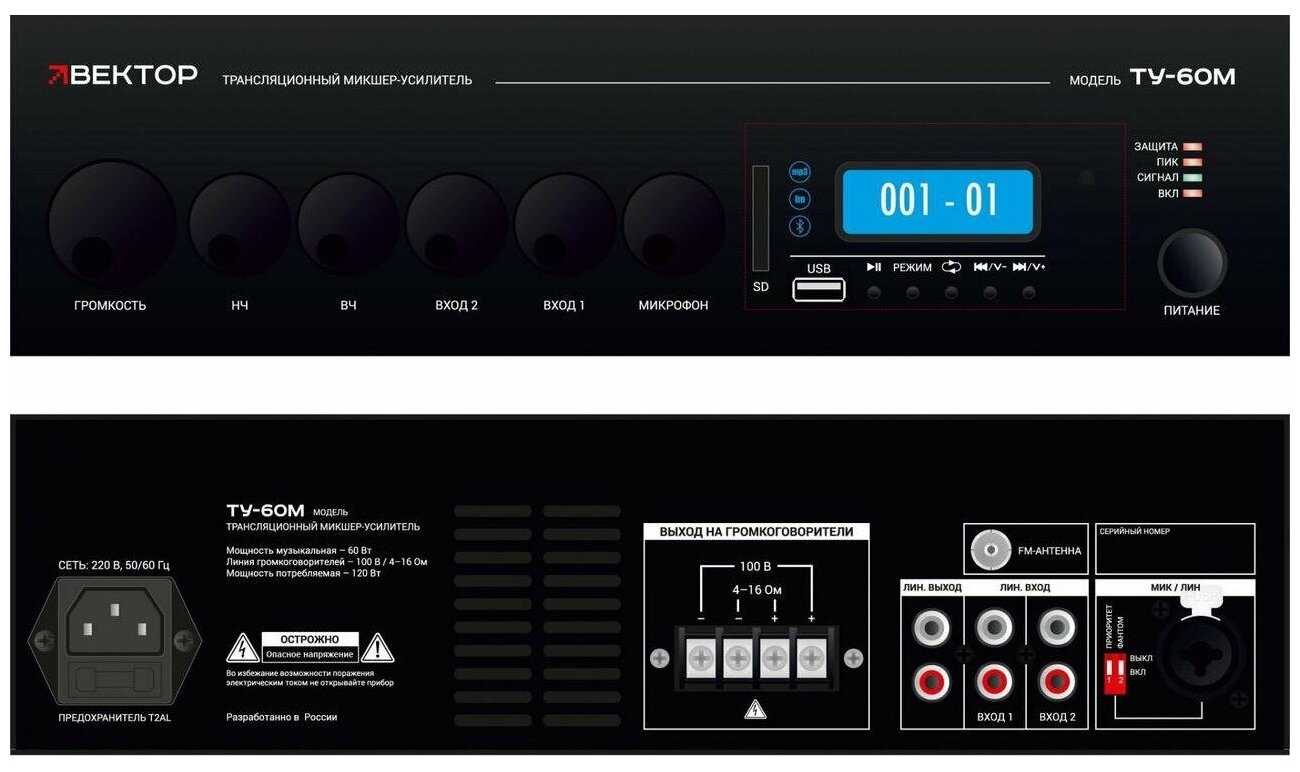 Отзывы о Микшер-усилитель комбинированный Вектор ТУ-6350М