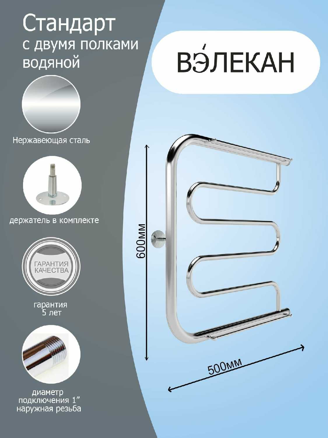 Характеристи ВЭЛЕКАН Полотенцесушитель Вэлекан 50/40 с полкой (фокстрот)