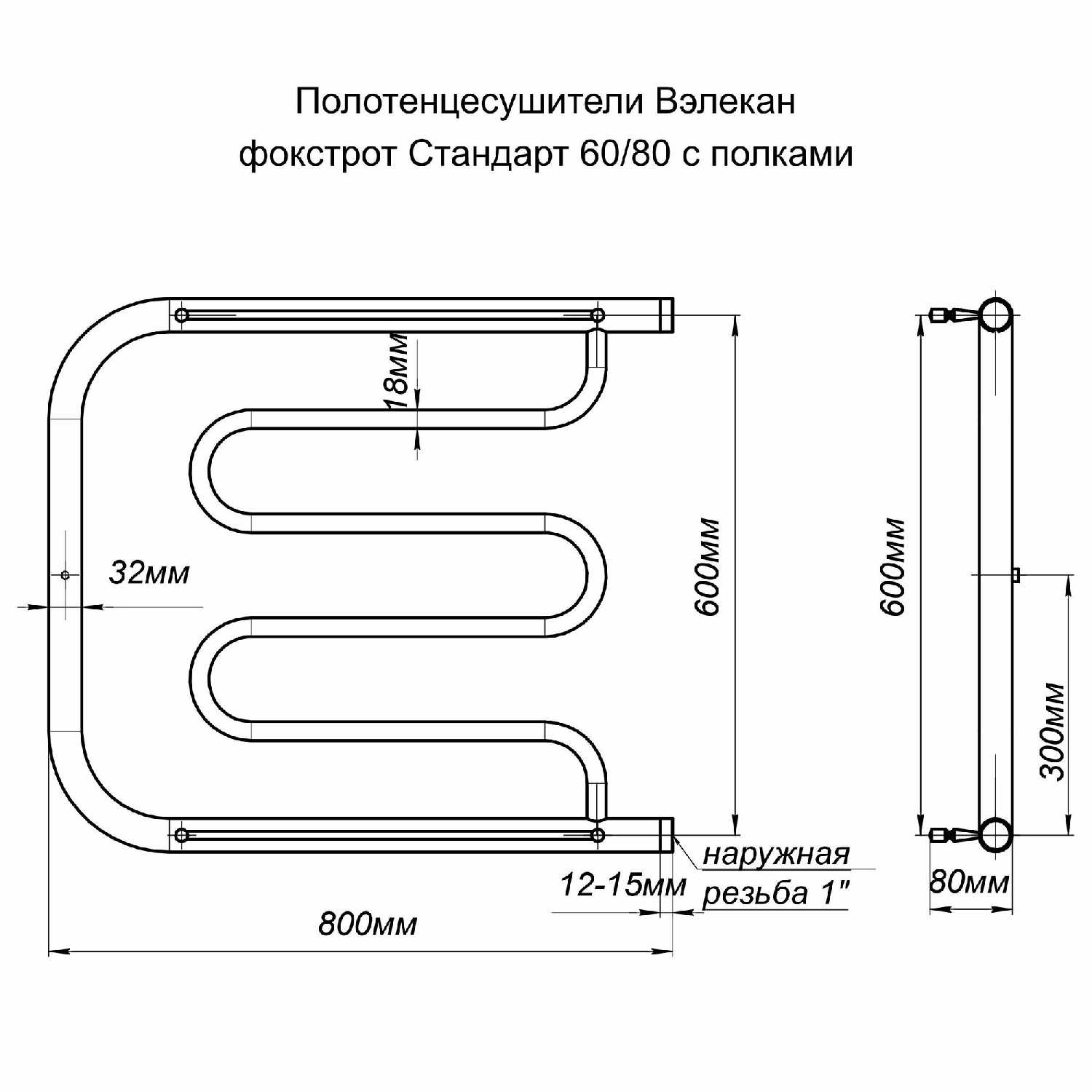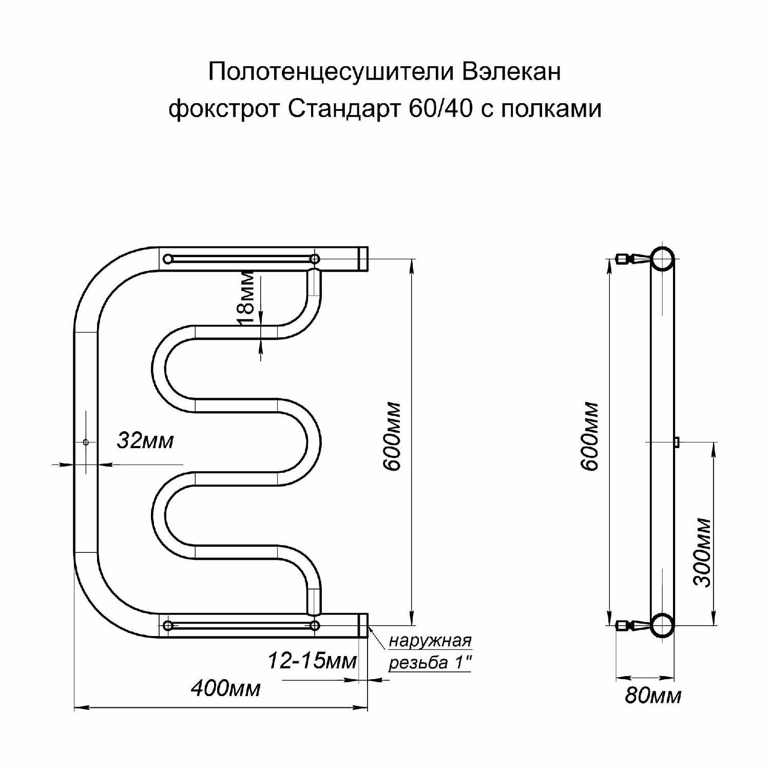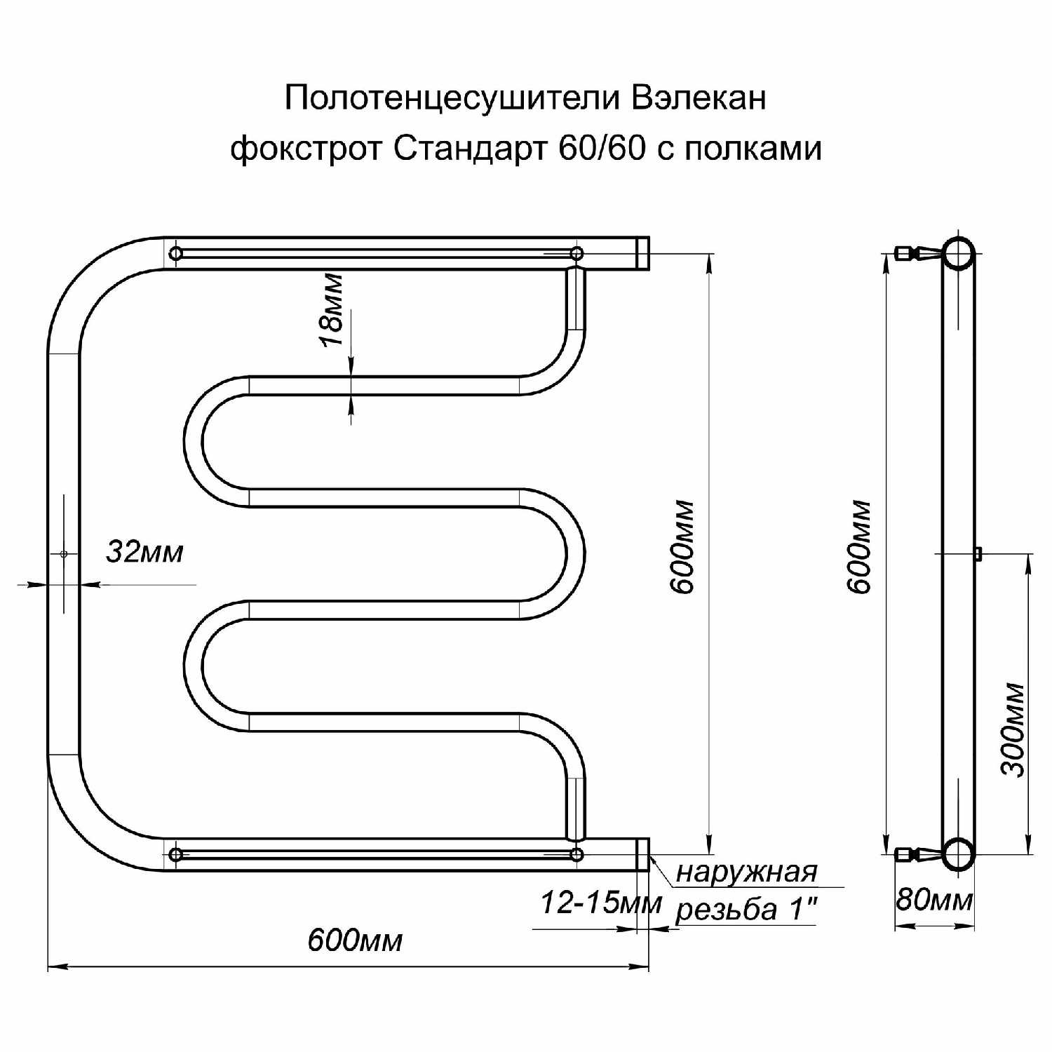 - форма полотенцесушителя: фокстрот