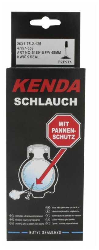 Kenda Камера антипрокольная с герметиком 26 5-518915 спорт ниппель 48мм 1,75-2,125 (47/57-559) KENDA