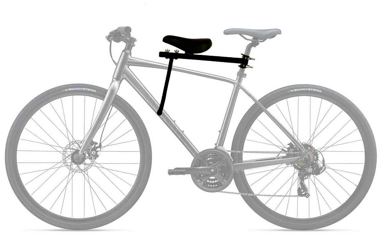 Ребёнок сидит спереди и не меняет баланс при езде, так как если бы сидел сзади. При езде ребёнку все видно вокруг. Подножки кресла соприкасаются с рамой велосипеда. Пришлось в этом месте подложить кусочек камеры(можно было что то намотать) чтоб краска не поцарапалась.