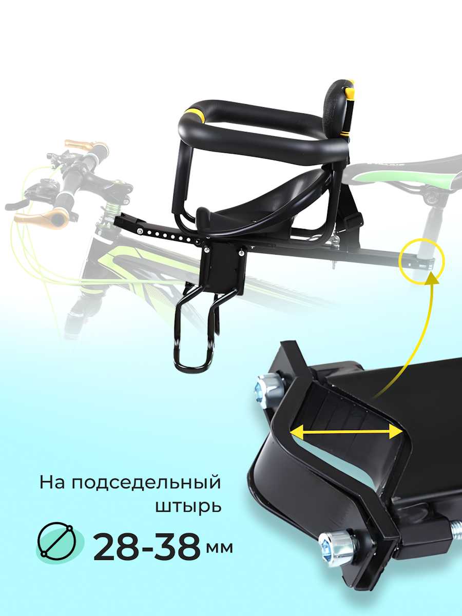 - Подходит к городским, горным, женским и мужским рамам с геометрией, позволяющей установку без конфликта с седлом родителя в большинстве случаев.