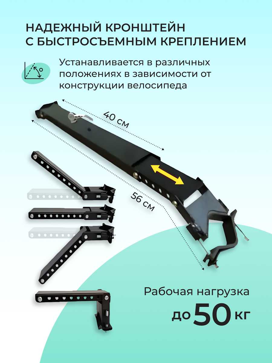 - Для рам 18 дюймов возможна доработка длины кронштейна, но базовая конструкция фиксируется надежно, не смещаясь при перевозке ребенка.