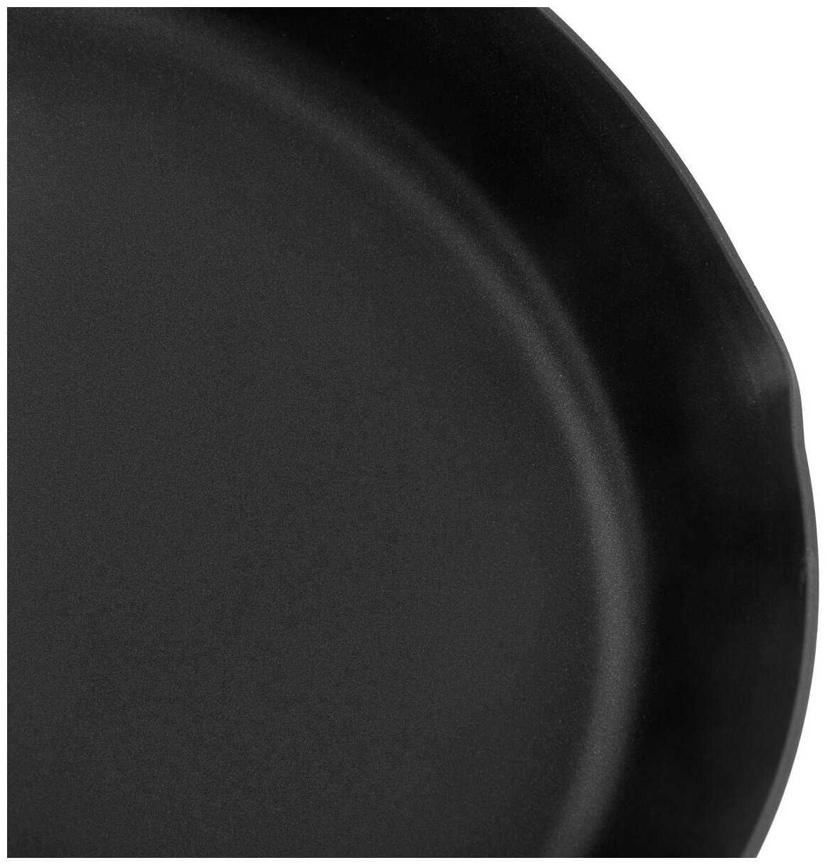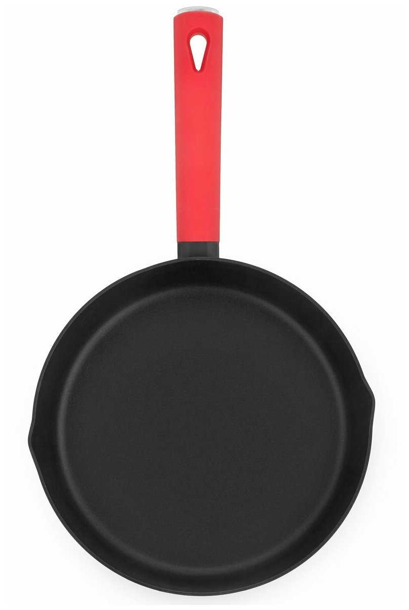 Покупали по критерию веса и понравилась внешне. Ручка хорошая, не скользит, покрытие софт-тач. Носики для слива удобные. Дно выпуклое внутрь по центру. Пришла в простом пакете, поэтому есть сколы на ободке. Покрытие внешне не выглядит надёжным, да и дно тонковато. Как по мне, запрашиваемых денег не стоит, но решили оставить-жене нужна именно не тяжёлая сковорода для индукции.