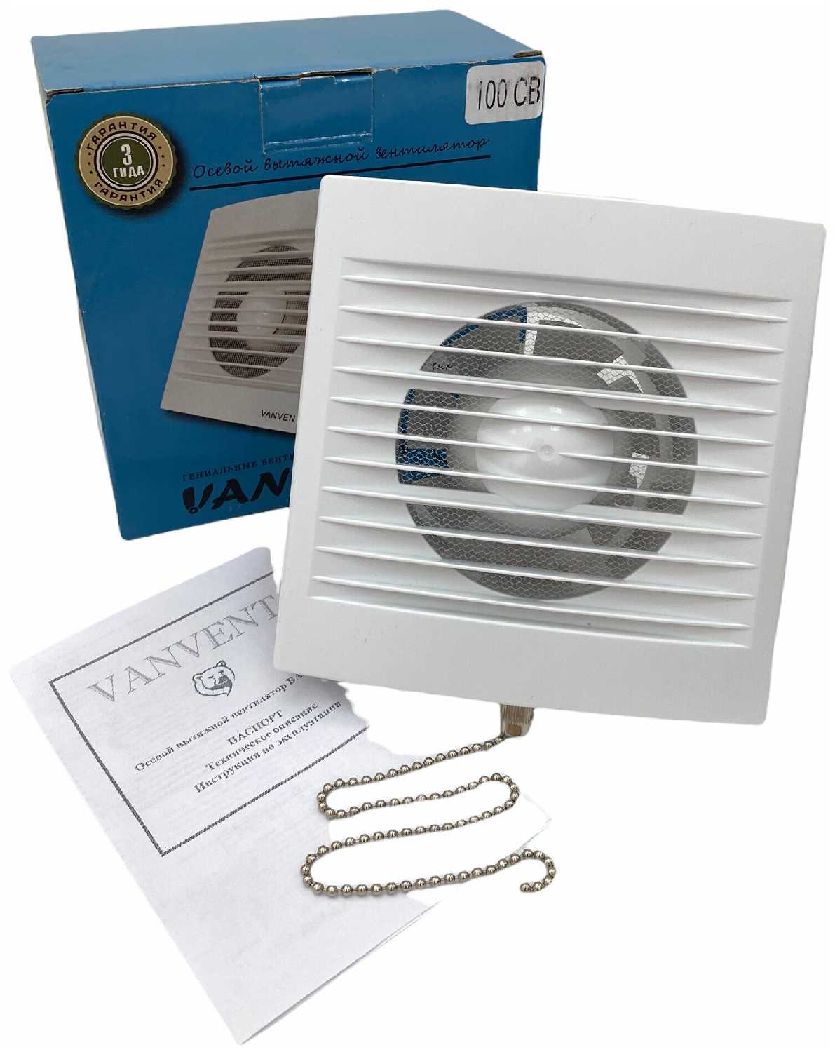 Ванвент Вентилятор вытяжной осевой 100 СВ для вытяжки из ванных комнат и санузлов, с москитной сеткой, 97 м3/час, низкий уровень шума (до 33 Дб), 12 Вт