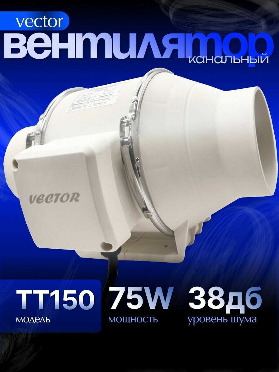 VECTOR 150 В, 150 мм, воздухообмен 280м3/ч, 20 Вт, выключатель, белый