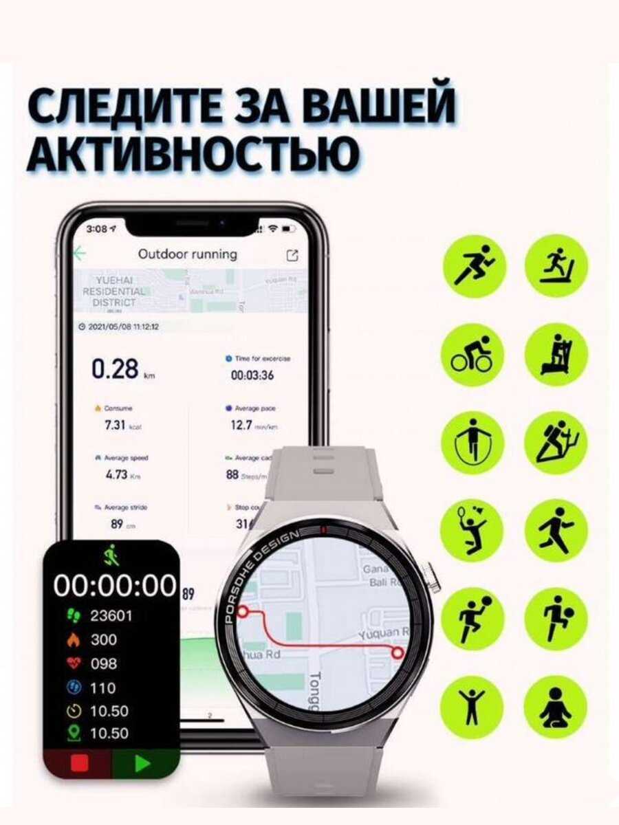 | Дополнительные функции : | будильник, компас, секундомер, термометр воды, шагомер |