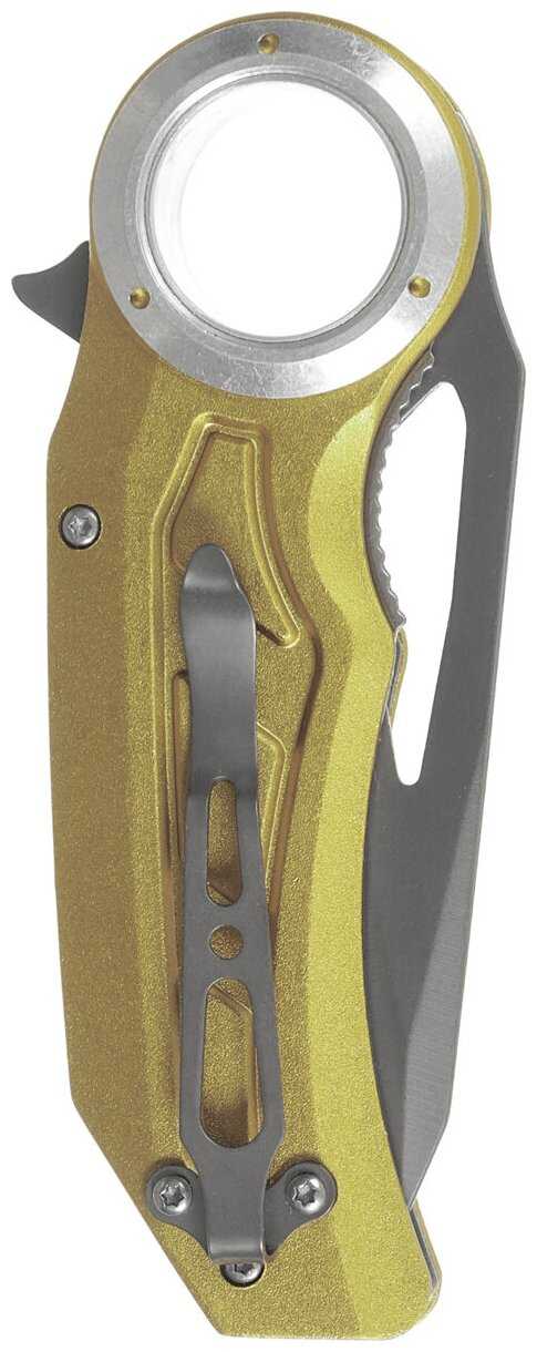 | Особенности : | автоматический выброс клинка, блокировка лезвия, возможность использования одной рукой, клипса для кармана, кольцо для ключей, серрейторная заточка |