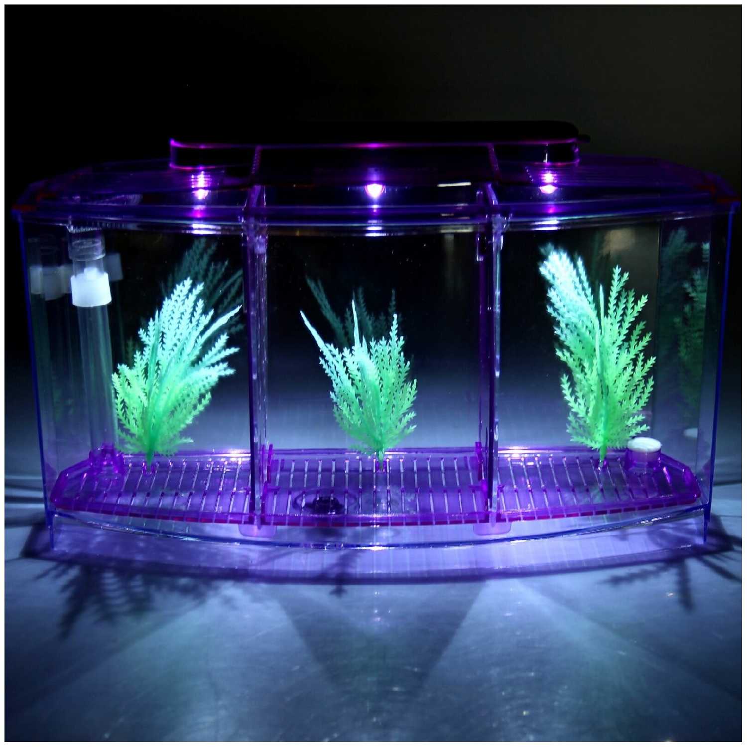 Отзывы о Аквариум-отсадник трехсекционный с подсветкой и светящимися растениями, фиолетовый